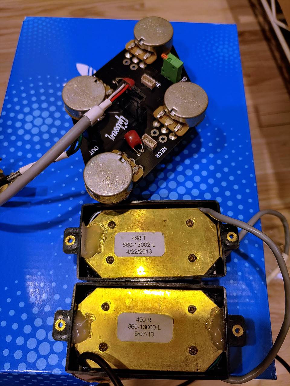 깁슨 LPJ의 PCB와 픽업이다.. PCB야 작업 효율성 (인건비가 비싼 동네고 납땜 숙련공은 또 비쌀 테니..)을 위해 그렇다 치지만 (픽업 교체가 쉬워서 난 좋음 ) 저 픽업 꼬라지봐라.. ㅡㅡ;; 백만원짜리 기타픽업 커버를 글루건으로 붙여 놨다.. 보통의 업체들은 실리콘 같은걸 딮핑해서 튼튼하게 해두는데.. 깁슨은 얄짤 없다.. 대신 덕분에 저 싸구려 껍데기 분리하기아 얼마나 쉬운지 모른다. 벌써 브릿지 498T는 하나 떨어져 있다.