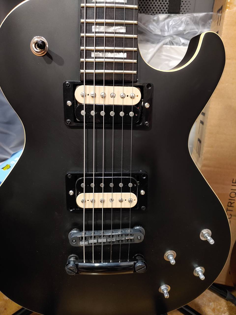 써로브레드 스탤스의 사양은 마호가니 바디에 메이플 탑(플레인 이겠지, 사양서등에 탑이 마호가니라는데 픽업을 따보면 아래는 붉은 마호가니 위는 밝은 메이플이 확인된다. 얼마전 깁슨 LPJ PCB어셈블리를 심느라 팟 구멍을 넓힐때도 확인한 것이다), 마호가니 C shape 넥에 에보니 지판, 22 점보 프렛, EMG 81, 85 세트가 달려있다.