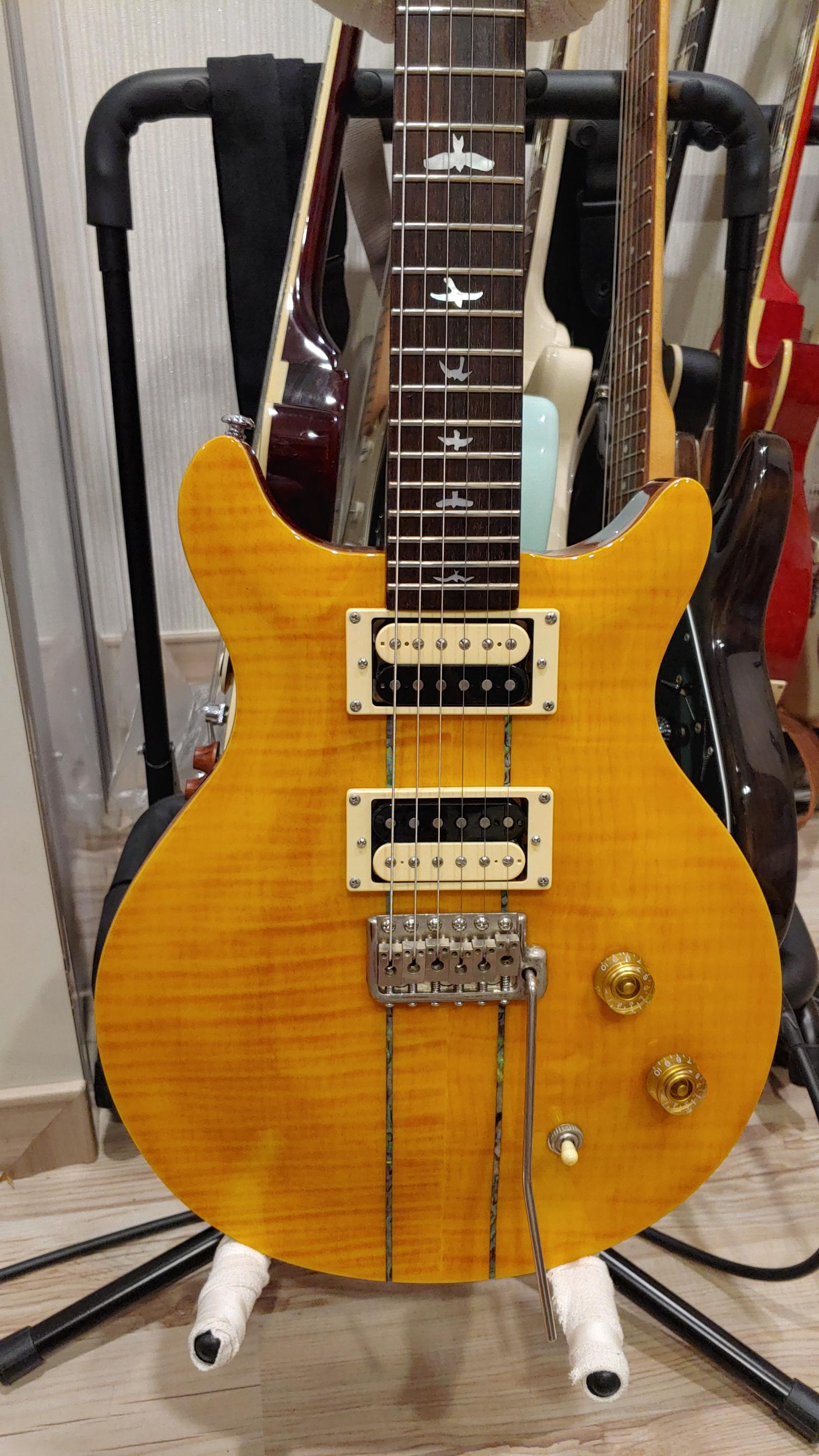 레스폴 아류들을 연주하면 정말 기분이 좋다. 묵직하고 풍성한 넥 험버커 픽업의 소리가 너무 좋다. 하지만 대부분 기타 솔로를 커버하는 것으로 만족하는 손가락이 짧은 기린이에겐 레스폴의 19~22프렛의 연주는 너무나 가혹하다. 유튜브의 영상들을 보면 숙력된 연주자들 초차도 하이프렛 연주시 거의 어거지로 연주하는 듯한 느낌을 받곤 한다. 하이 프렛의 연주가 편한 기타를 이미 구비하고 있지만.. 조금 별다르게 생긴 산타나 시그니처 모델은 오랫동안 관심을 가지게 하는 묘한 매력이 있다. 가장 합리적으로 선택할수 있는 기타는 PRS SE 산타나 모델중 한국에서 마지막으로 생산한 모델인데.. 어떻게 인연이 닿지 않아서 구하지 못하고 있다가.. 우연히 눈에 띈 것이 PRS 모델의 카피 모델로 인기가 많았던? JB Custom에서 만든 산타나 모델이다. 초기 중기 후기 모델로 구별 되는듯 한데.. 내가 구한건 거의 마지막에 생산된 모델처럼 보인다. 잘 찾아 보니.. 2013년에 만든 초기 모델인듯 하다.