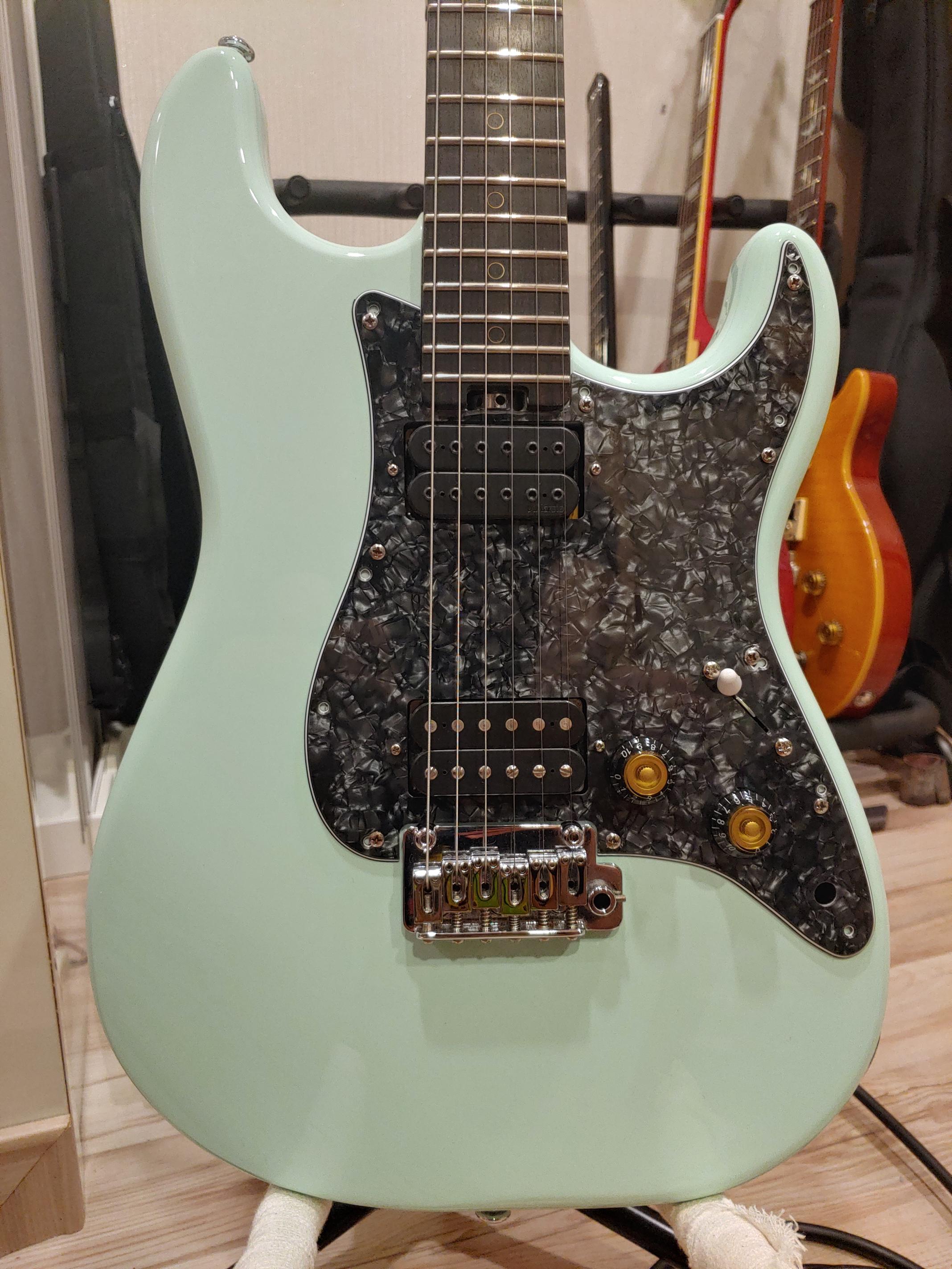 11홀 스트렛 픽가드의 넥 부분은 좀 따내고, 나사 구멍은 기존 닉존스턴 픽가드의 구멍 위치를 표시해서 추가로 뚫어준 것 까진 좋았는데 마지막 톤팟 위치에 팟을 넣었더니 바디랑 간섭이 생긴다.. 1V 2T에 푸시푸시 넣어서 코일 스플릿이랑 아웃오브페이즈 넣을려 했는데.. 걍 푸시푸시 하나만 톤에 달고 코일 스플릿 으로 배선 완료.