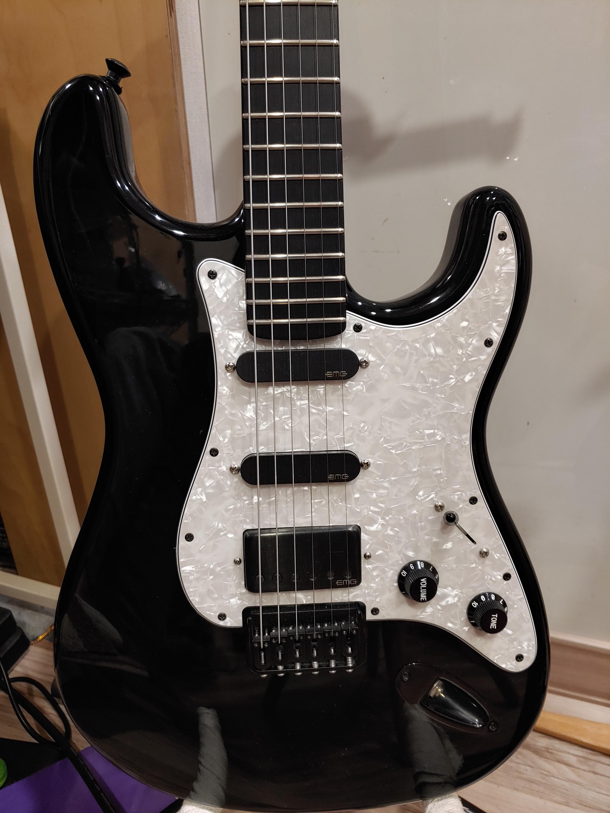 기본 모델은 위의 기타이고, 내게 판매한 분이 EMG HSS으로 교체한것을 구입했다. 좀 써보다가 베터리 갈아줄 타이밍이 되면 디마지오 험험 (얼마전 쉑터 닉존스턴에 달아줬던 세트)으로 교체해볼 생각이다.