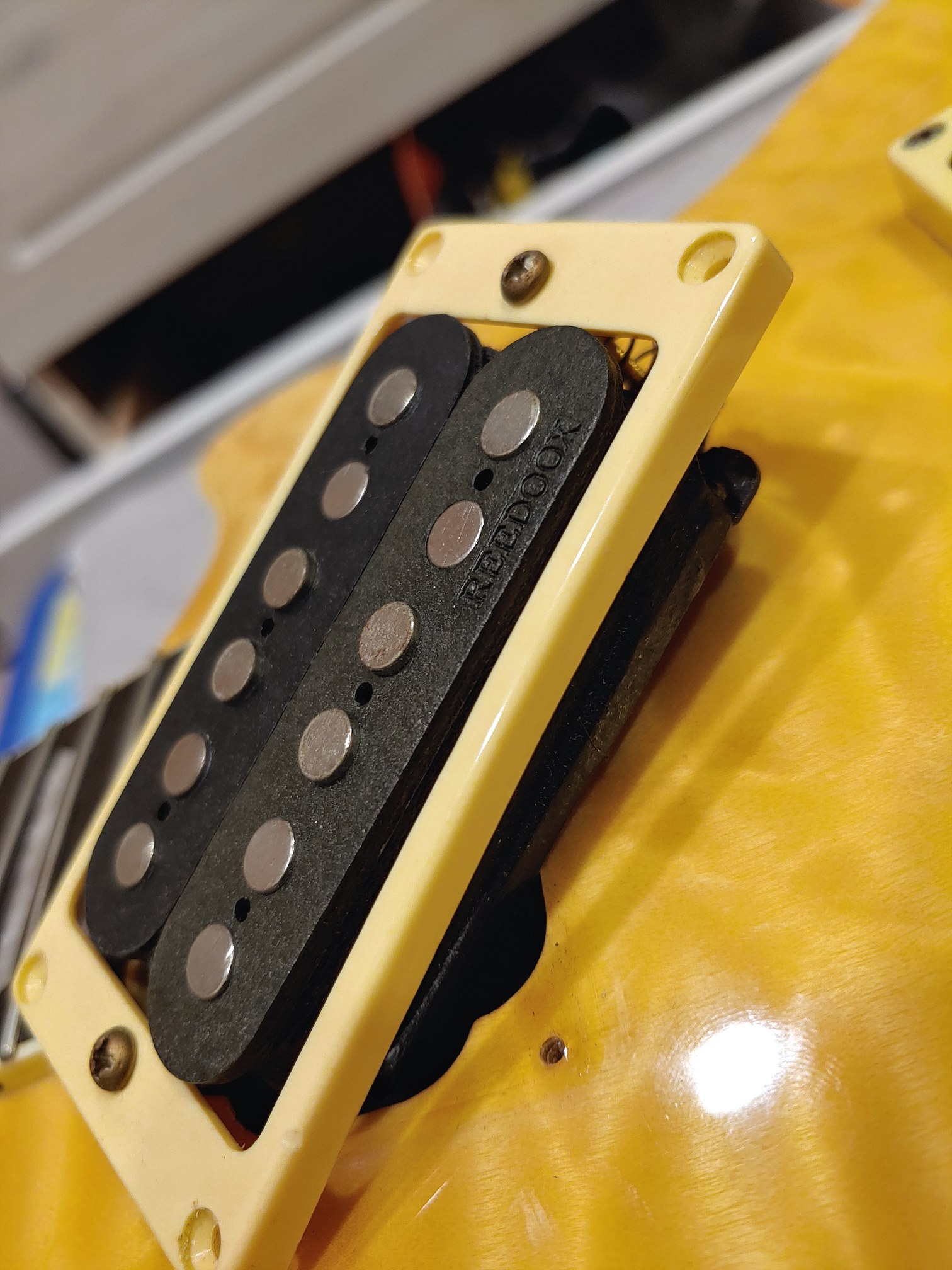 신기한게.. 리어는 평평한게.. 넥은 이렇게 중간이 볼록 올라오게 폴피스가 박혀있다. 몬스터 픽업 따라한거라는데.. 쉑터 몬스터 픽업은 싱글이건 험버커건, 넥이건 브릿지건 죄다 평평하던데.. ㅠ.ㅠ 뭔가 삐꾸다.