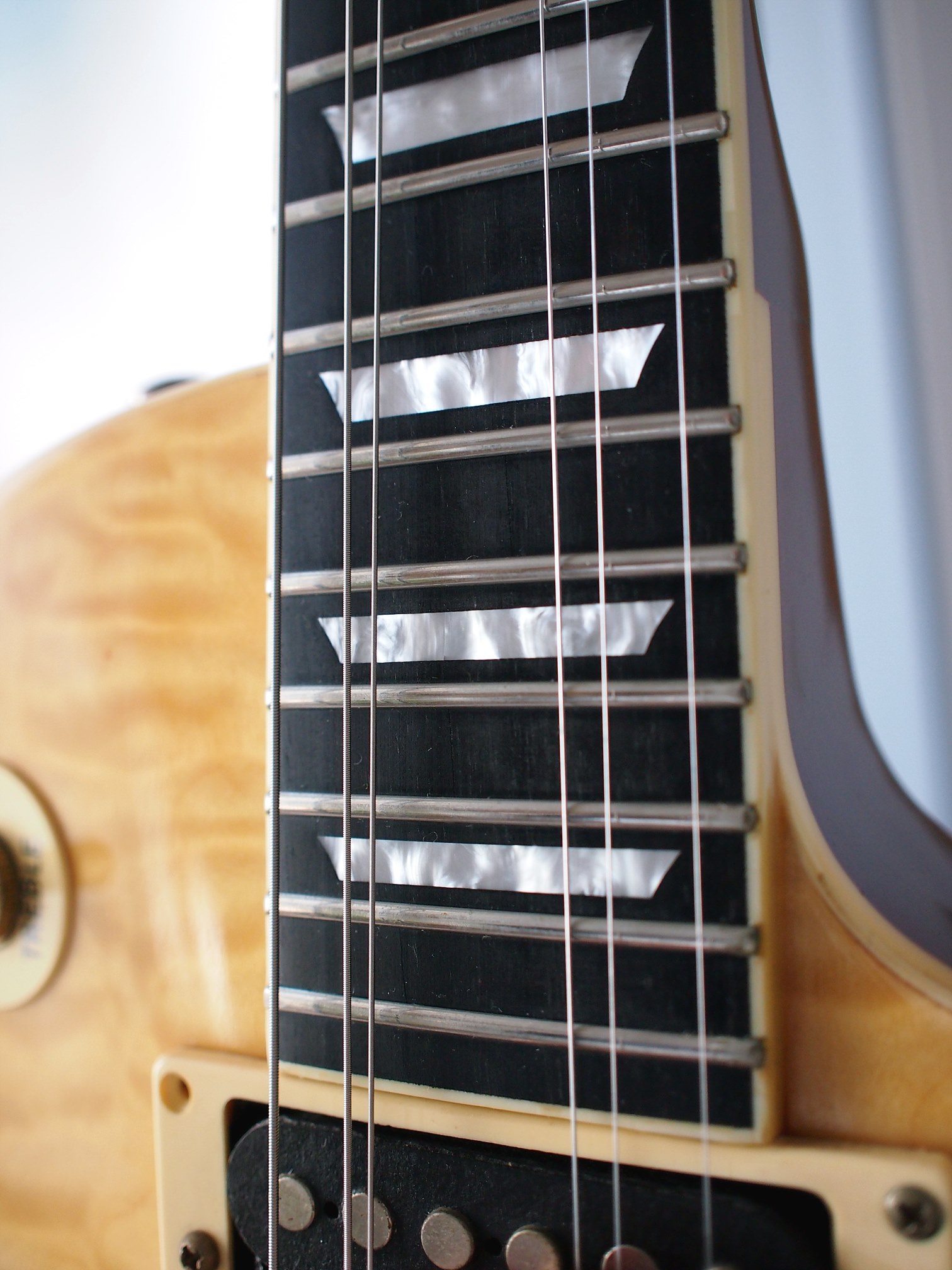 바디와의 접합부는 힐컷 덕분에 넥의 접합부 두께가 얇아져서 적층하지는 않은 듯 하다. 저렴한 기타들의 대부분이 비싼 넥 목재를 아끼기위해 바디와의 접합부는 나무를 덧대어서 두껍게 만든다. (보통 품질이 좋은 마호가니는 검은 점 무늬가 촘촘하다고 하는데.. 내가 가진 모든 마호가니 넥과 기타들은 바디보다 훨씬 촘촘한 무늬를 가지고 있다. 마호가니가 메이플 모다는 덜 단단해서.. 아무래도 좀 밀도가 높은 나무를 선별해서 넥을 만드는게 아닐까 추정해본다. )