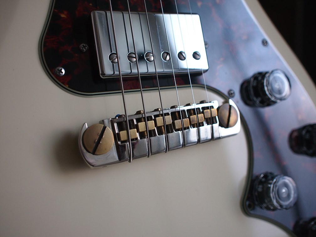 요것이 구형의 브릿지이다.. 좀더 고급 모델은 브릿지에 줄이 걸리는 마지막 부분에 황동이 삽입된것도 있는데.. 암튼.. 이렇게 생긴녀석은 혹시나 줄이 살짝 불량이거나.. 아니면 변칙 게이지를 사용할때 피치를 적당 범위내로 맞추는 것이 불가능 하다.. ㅡㅡ;;