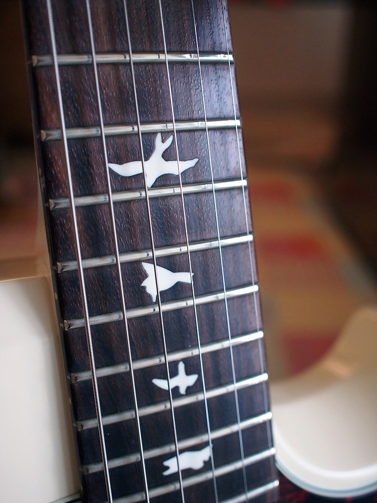 보통의 PRS 더블컷 보다 5mm 정도 두꺼운 바디를 가지고 있으며, 커스텀 모델처럼 메이플 탑이 없는 스탠다드 모델 중 17년 이후 모델은 개별 새들의 피치 조절이 가능한 랩어라운드 브릿지가 달려있다. 그리고 PRS의 상징과도 같은 버드 인레이.. 당시 깁슨 레스폴 스튜디오와 PRS S2 싱글컷 사이 엄청 갈등을 했었는데.. (결국 두개를 다 사긴 했지만.. ) 연주의 편안함이 더 중요하다고 생각해서 S2 싱글컷을 구입했다.