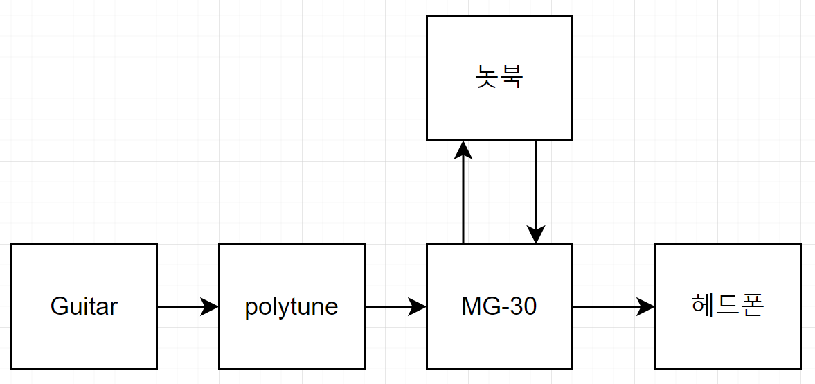 요런식으로 연결되었다. 물론 놋북과 왔다 갔다는 USB 로 연결한거고, MG-30은 멀티이자 오인페 역할을 한다.