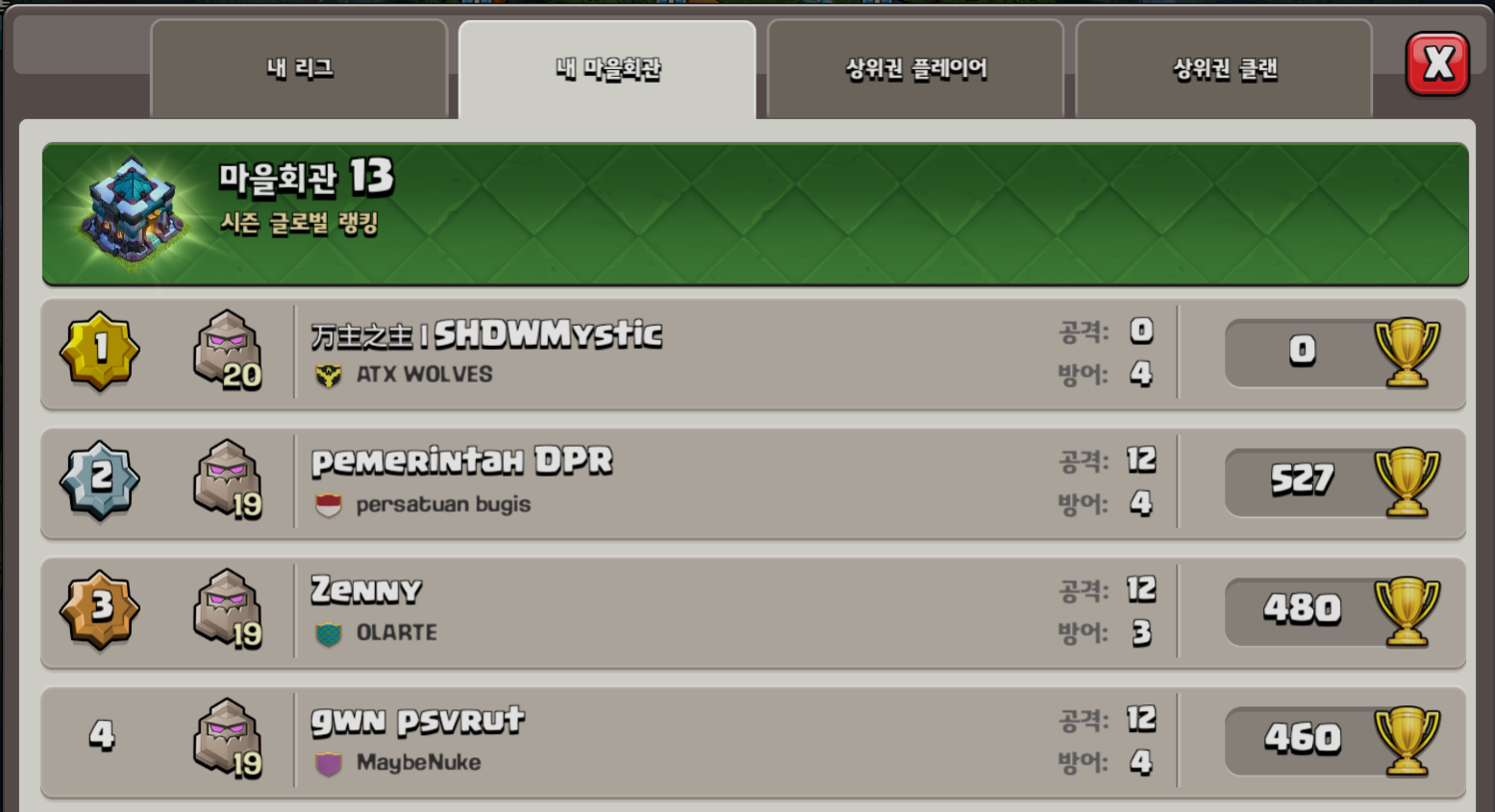 현재 13홀 세계 랭킹 1위는 골램 20에 위치하고 있는 ATX WOLVES의 ..만주짱이다..